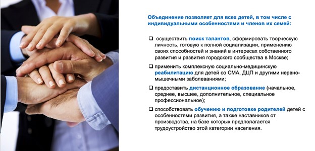 Объединение позволяет для всех детей, в том числе с индивидуальными особенностями и членов их семей: